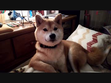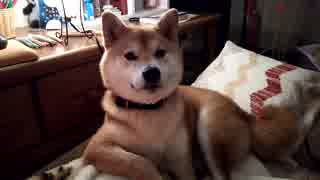 うちの、偉そうな格好で甘える柴犬くん