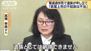 電通過労死事件 上司不起訴で遺族審査会に申し立て