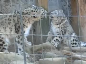 ユキヒョウ:母のミミと子供のフク君(多摩動物公園)