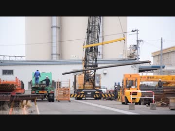 仙台埠頭駅での鉄道レールの荷役作業