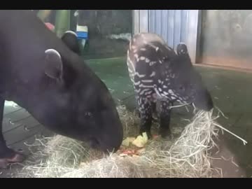 マレーバク:親子でムシャムシャ(多摩動物公園)