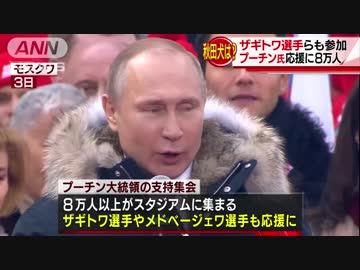 プーチン大統領応援に8万人 ザギトワ選手らと国歌を