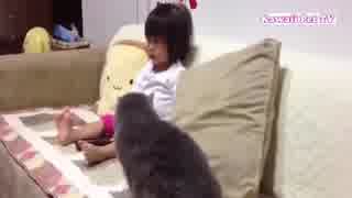 人間の赤ちゃんを自分の子供のように思っている猫たち・必死に赤ちゃんを守る猫たち