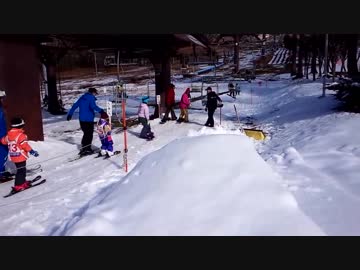 <ひるがの高原スキー場>キッズスキースクールのコーチと一緒に初めてリフトに乗り、上から滑りおりるあい!