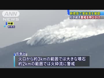 新燃岳、火口から溶岩流が流出 5キロ先に人家