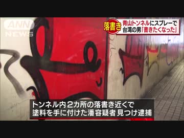 台湾の男「書きたくなり・・・」渋谷・青山トンネルにスプレー