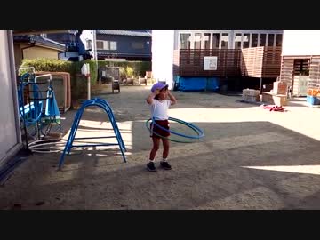 フラフープを回しながら歩いたり、二本回しをするあい!!★Played hula hoop★