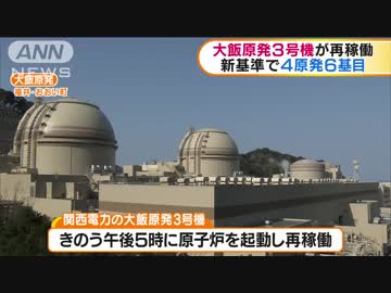 大飯原発3号機が再稼働 新規制基準で4原発6基目