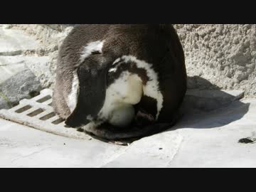 転卵したり魚を踏んだりしながら抱卵するペンギン【千葉動物公園】