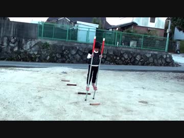 竹馬で障害物を超えるあい!