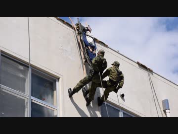 郡山駐屯地 レンジャー隊員のロープ降下展示