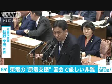 立民・枝野代表「原発支援の金あるなら賠償に」国会で東電を猛非難