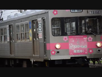 美術館図書館前駅を出発する福島交通7000系 飯坂電車