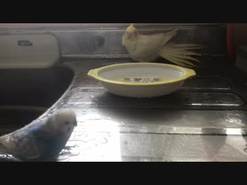 オカメ、セキセイ、ウロコ 仲良く?いつもの水遊び♪
