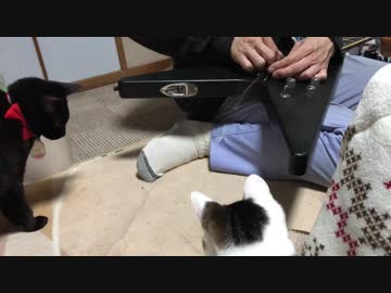 ギターの弦の張り替えが気になる猫