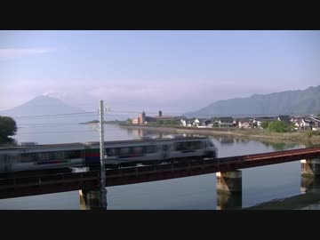 ある日の桜島(その69)<別府川に架かる鉄橋と桜島>