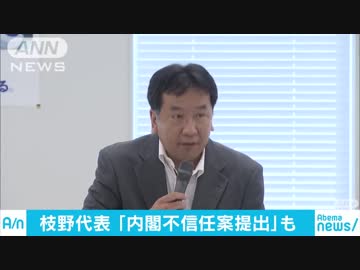 立憲民主党・枝野幸男代表 内閣不信任案提出の可能性言及