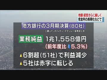 地銀経営さらに厳しく 低金利長期化などで