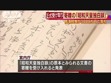 宮内庁が「昭和天皇独白録」受け取り 高須院長がオークションで落札したものを寄贈