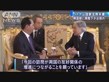 両陛下が国賓のベトナム国家主席夫妻にお別れ
