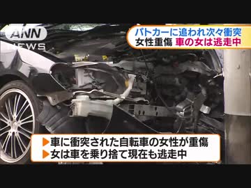 パトカーに追われて次々衝突 車の女は逃走中