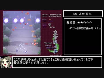 【1~3面】東方妖々夢lunatic 霊夢B ノーボム(霊撃有) クリア重視解説【LNB】Part1