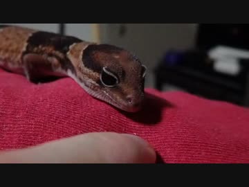 指ペロして瞬きするニシアフリカトカゲモドキ(ハイスピード撮影)