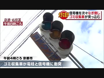 「雷が落ちたみたい」 ゴミ収集車衝突し信号くの字