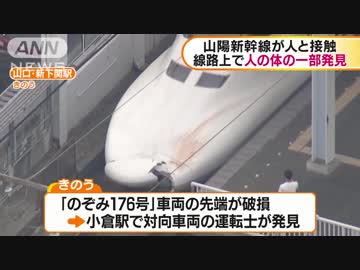 山陽新幹線始発から通常通り運転 線路上で体の一部見つかる