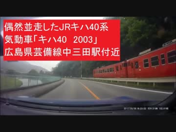 偶然並走したJRキハ40系気動車「キハ40 2003」 広島県芸備線中三田駅付近 電車