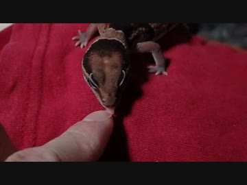 指ペロするニシアフリカトカゲモドキ(ハイスピード撮影)