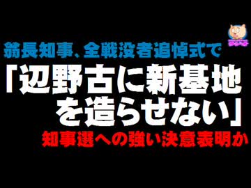 翁長知事、沖縄全戦没者追悼式で「辺野古に新基地を造らせない」と強調 - 知事選への強い決意表明か