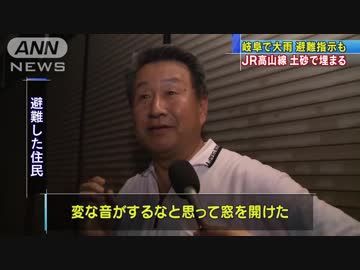 岐阜で大雨 避難指示も JR高山線が土砂で埋まる
