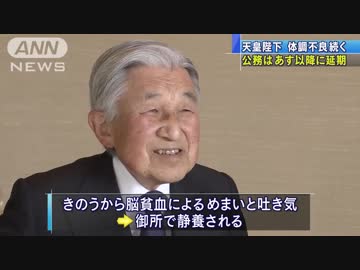 天皇陛下 軽い腹痛も 公務は4日以降に延期