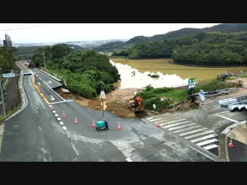 2018福岡豪雨❗国道201号飯塚市筑豊緑地の崩落現場❗