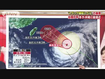 暴風“トラック横転レベル” 台風8号沖縄最接近へ