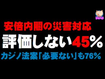 安倍内閣の豪雨災害対応「評価しない」45%、カジノ法案も「必要ない」76%
