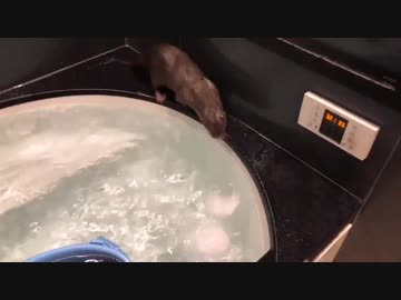 お風呂に氷を入れたらビビってもう駄目になるカワウソ
