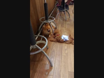 ポメラニアンのさくら ティーカッププードルに出会う