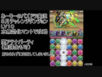 8月チャレンジダンジョンLV10 水無効化マント 闇アテナで攻略!