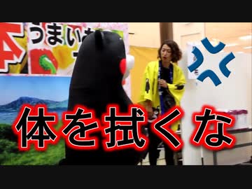 何しよん!?くまモン、タオルで自分の体を拭いてめぐみお姉さんに怒られる!!