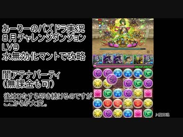 8月チャレンジダンジョンLV9 水無効化パ 闇アテナ