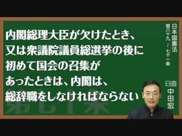 日本国憲法 第六十九条〔不信任決議と解散又は総辞職〕・第七十条〔内閣総理大臣の欠缺又は総選挙施行による総辞職〕・第七十一条〔総辞職後の職務続行〕とは?〜中田宏と考える憲法シリーズ〜