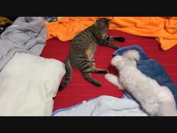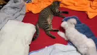 マルチーズVS猫。子犬と子猫の壮絶バトル!息詰まる攻防!