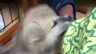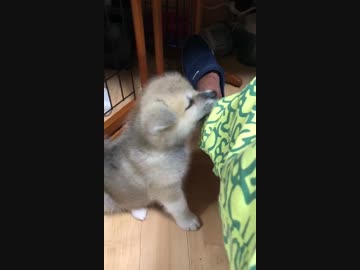 秋田犬の赤ちゃんが我が家にやってきてパパの脚にじゃれついてとにかく可愛い!