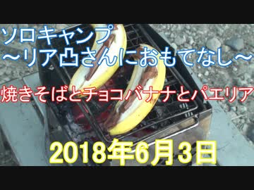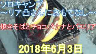ソロキャンプ リア凸さんにおもてなし 焼きそばとチョコバナナとパエリア