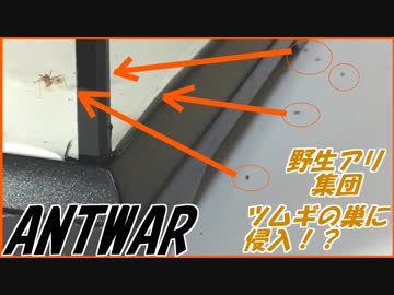 緊急事態!?野生のアリがツムギアリの蜜を盗みに巣に侵入。