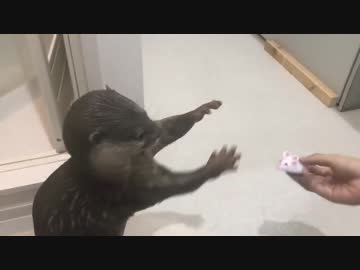 〔犬かな?〕ネズミのオモチャを何度でも持ってくるカワウソ