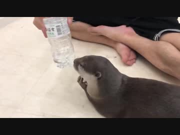 水が好きすぎて動きが変になるカワウソ