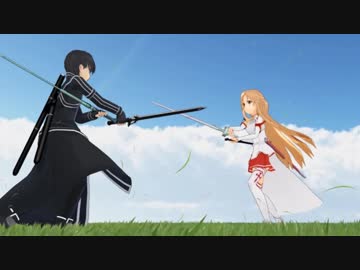 【MMD】アスナさんがキリトくんの二刀流の特訓に付き合っている風景。